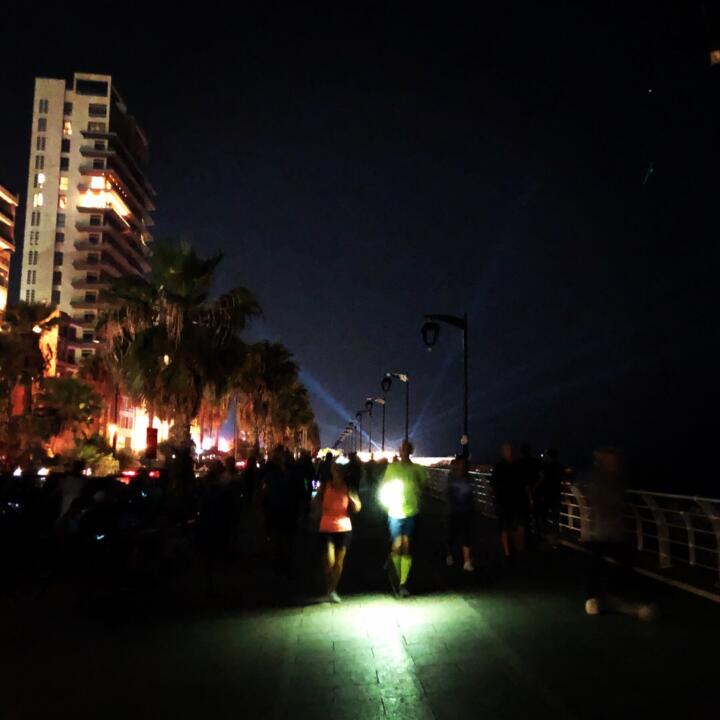 In addition to pollution, dark streets pose a danger on their own. Here’s Beirut’s most famous road, the seaside Corniche, last week: