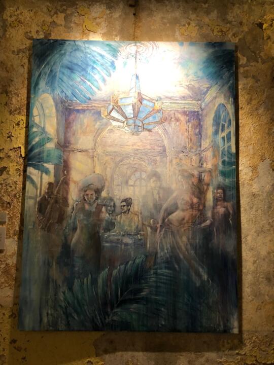 Tom often uses souvenirs or relics found in the buildings to help tell the story and frame the art. The Grand Sofar was also famous for its casino, where prime ministers, Kings, and spies probably tried their luck.