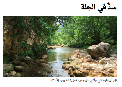 بعد مرور أربع سنوات على تلك الحادثة، يبدو الواقع أشدّ مرارة. فقد بدأ العمل على بناء السدّ في العام الماضي، وإذا استكمل، من المفترض أن يكون الأكبر في العالم العربيّ. وقد أدّى إلى جرف مساحاتٍ واسعة من الوادي وقلع آلاف الأشجار (من غير المتوقع أن ينتهي العمل به في العام 2016 كما هو مخططٌ له). تمّ هدم معظم المزارع والمنازل في قرية أبي عكر التي تعرف باسم “جنّة”. وتقع القرية على الضفّة الشمالية لنهر إبراهيم، الذي يجري من تحت القمم التي يملأها الثلج وصولاً إلى البحر الأبيض المتوسط، على بُعد 12 ميلاً من منزل أبي عكر. يمرّ النهر وسط النباتات الخضراء في وادي أدونيس المليء بالشلالات والينابيع الطبيعيّة، والذي يشكّل الوعاء الحياتيّ لأكثر من سبعمئة نوعٍ من الحيوانات والنباتات. فوادي أدونيس هو واحد من المناطق التي تشهد أعلى درجات التعدديّة البيولوجيّة في الشرق الأوسط.