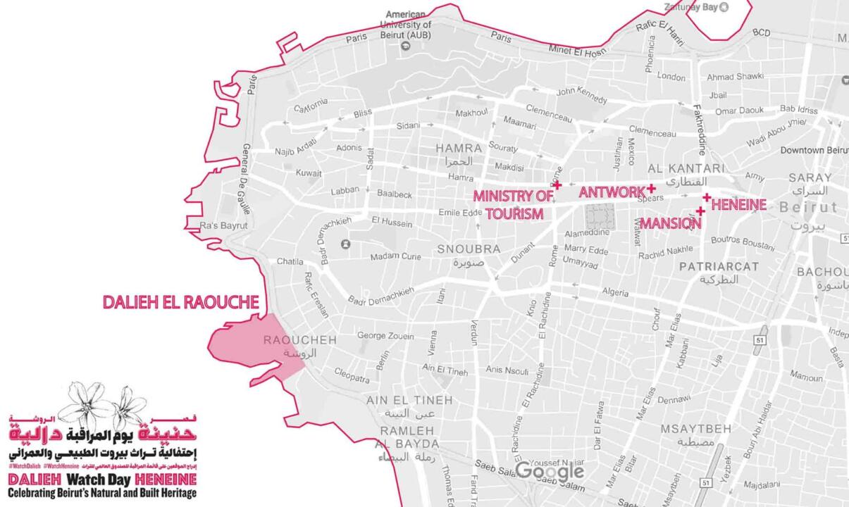 The two endangered sites are Dalieh of Raouche peninsula, the only remaining natural headland in Beirut with a 7,000 year history; and Heneine Palace, one of the largest and only remaining buildings from the 1800s left in the city today. Both sites are threatened by private developers. Both sites are part of vanishing historic neighborhoods. Both sites tell a story-a million stories- about us, our ancestors, our city, our country, our humanity. Both sites need your support, your pictures, your social media posts, your feet on the ground, to demonstrate that these places are important, valued and popular enough that demolishing them will cause a public uproar.