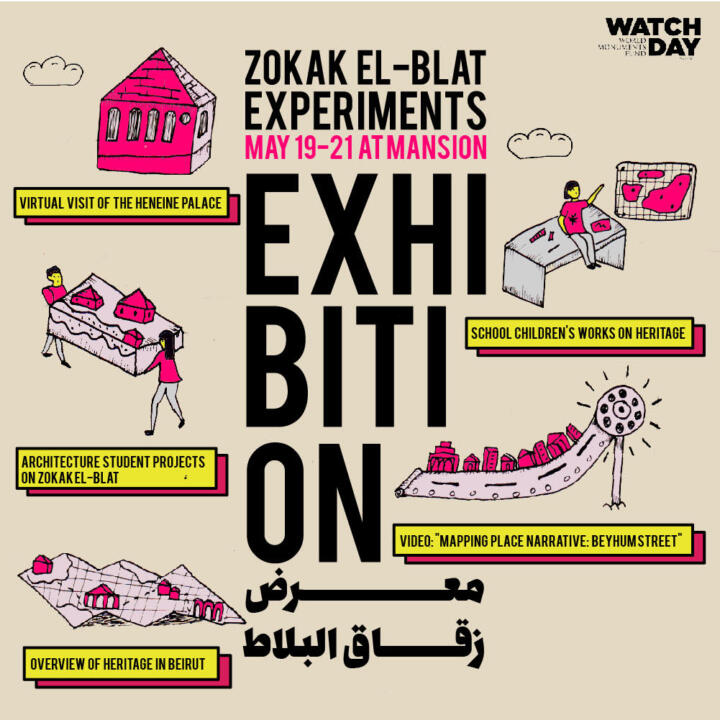 Includes a virtual tour of the Heneine Palace – Models produced by school students during heritage workshops – Architecture projects produced by university students from USEK – Screening of film “Mapping Place Narratives: Beyhum Street” – Heritage situation overview by Save Beirut Heritage