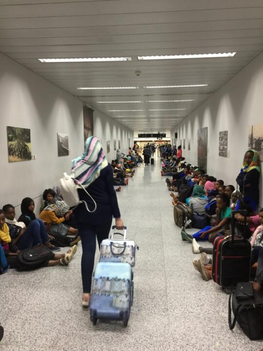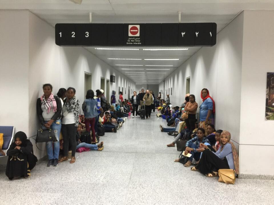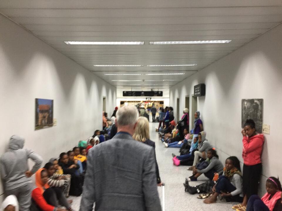 Hundreds of young Ethiopian women waiting to be picked up by their “sponsors.”