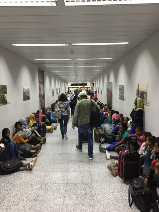 When I exited the plane in Beirut last night, I noticed an Ethiopia Airlines plane parked next to ours and thought little of it. But as we walked through the skywalk and then into a long corridor, this sight confronted all arriving passengers: