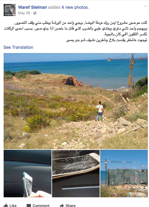 It’s also important to note that not all journalists and citizen reporters carry the weight of LBC–one of the country’s largest and most influential media outlets– with its high level political and military contacts to get out of a jam. In May, an activist was attacked and his phone destroyed when trying to document the construction of Eden Bay resort in Beirut, which has also been built directly on the public sand coastline.